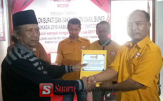“Kedatangan kami selain untuk bersilaturohim juga sekaligus untuk mendaftarkan diri maju di Pilbup 2018”, katanya.