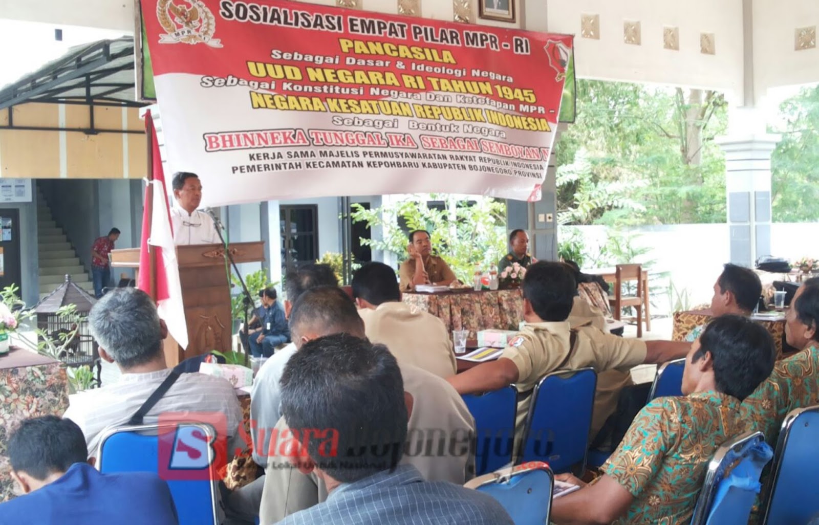 suarabojonegoro.com – Majelis Permusyawaratan Rakyat Republik Indonesia (MPR RI) bekerjasama dengan Pemerintah Kecamatan Kepohbaru, Kabupaten Bojonegoro mengadakan Sosialisasi Empat Pilar MPR RI di Pendopo Kecamatan sore ini, Selasa(18/7/17). Hadir sebagai nara sumber kegiatan tersebut anggota DPR/MPR RI Kuswiyanto.