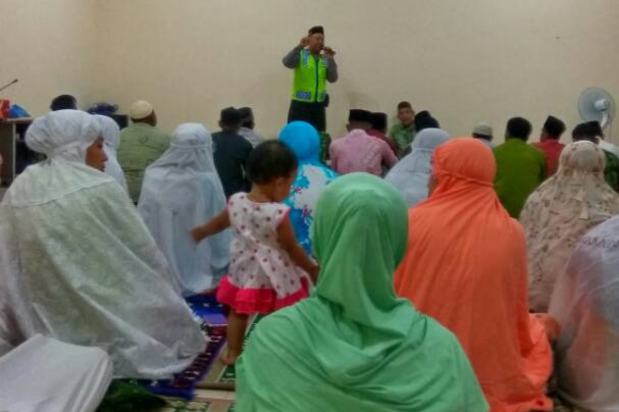 Giliran malam ini, Senin (19/6/17) Aiptu Zaenal Arifin melakukan shalat Tarawih berjamaan di rumah sakit Muhamadiyah Kalitidu dan menyampaikan kultumnya tentang malam lailatul Qodar.