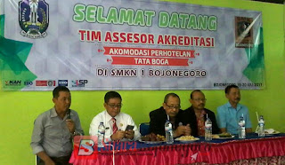 suarabojonegoro.com – Untuk menentukan kelayakan dan kinerja sekolah, Sekolah Menengah Kejuruan Negeri (SMKN) 1 Bojonegoro melaksanakan kegiatan akreditasi atau penilaian (asesmen) sekolah secara sistematis dan komprehensif melalui kegiatan evaluasi diri dan evaluasi eksternal (visitasi), Rabu (19/7/2017).