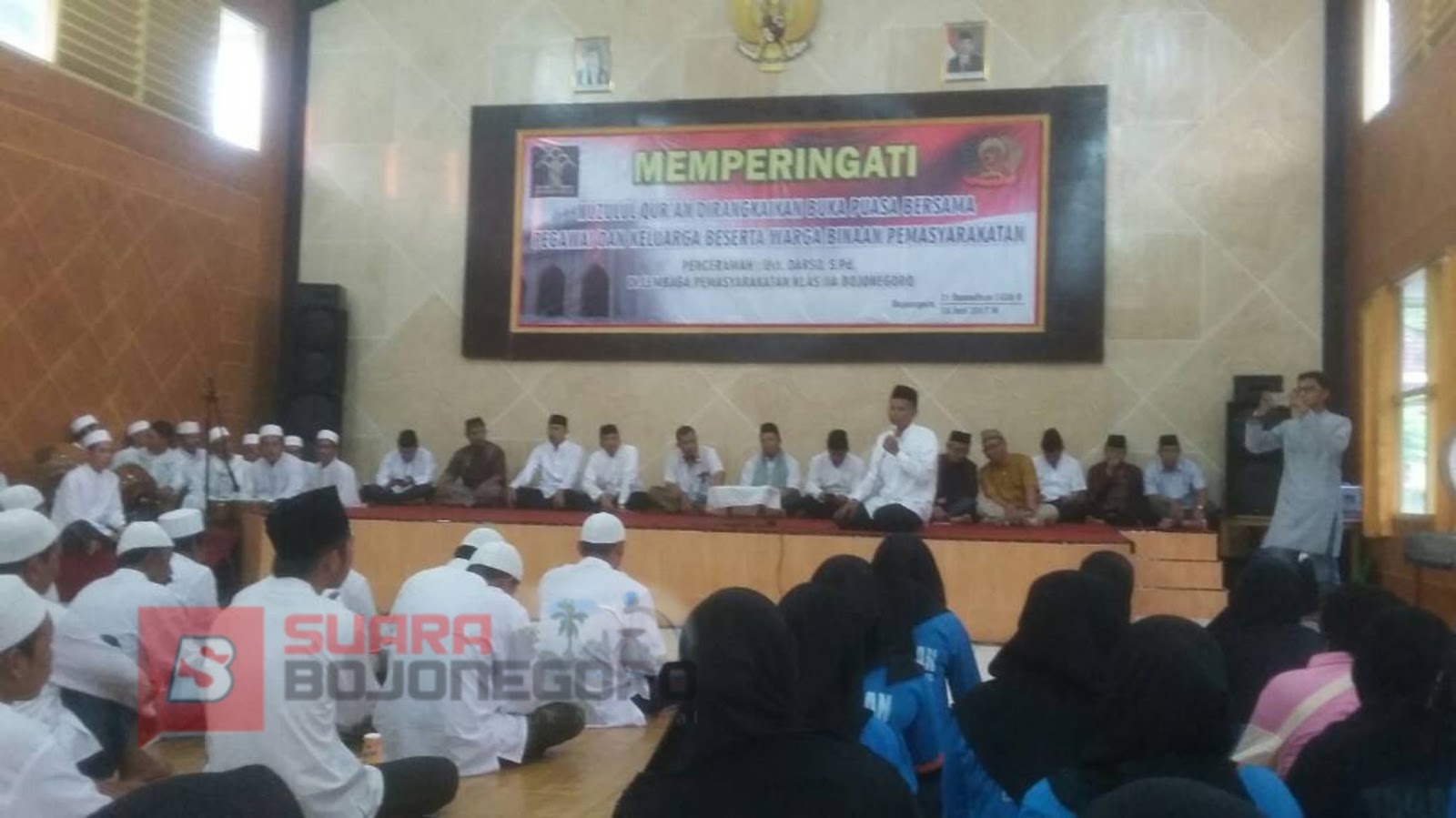 suarabojonegoro.com – Dalam rangka memperingati Nuzulul Qur’an dirangkai buka puasa bersama pegawai dan keluarga beserta warga binaan, Lembaga Pemasyarakatan (LP) kelas IIA Bojonegoro mengadakan buka puasa bersama di gedung pertemuan kompleks LP setempat. Acara tersebut dihadiri juga oleh salah satu Bakal Calon Bupati Bojonegoro, yakni H Sutrisno atau biasa disapa Pak Tris Pinggiran. Jum’at (16/6/17).