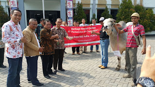 suarabojonegoro.com – Operator proyek Unitisasi Lapangan Gas Jambaran-Tiung Biru (J-TB), Pertamina Eksplorasi dan Produksi Cepu (PEPC) membagikan sebanyak 20 hewan kurban yang terdiri dari 15 sapi dan 4 kambing kepada masyarakat sekitar proyek J-TB di wilayah Kabupaten Bojonegoro, dan juga 1 sapi yang diserahkan pada masyarakat di sekitar Kantor PEPC di Jakarta pada Hari Rabu (30/8/2017).