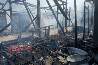 Adapun rumah yang terbakar tersebut terbuat dari bahan tembok setengah badan,dinding kayu dan atap kayu dengan ukuran panjang 12 meter dan lebar 7 meter.